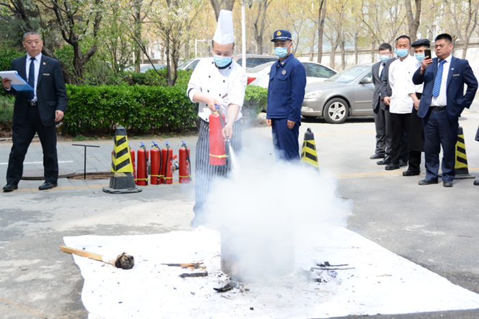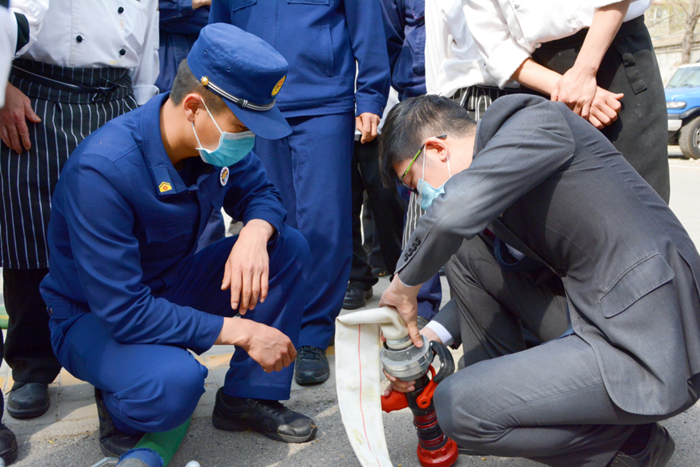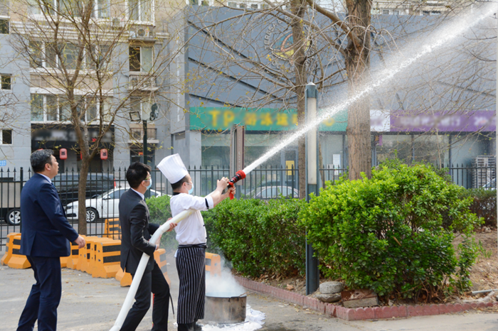 培训中,消防救援站人员围绕安全用火、自查自纠火灾隐患、扑灭初期火灾、疏散逃生等基本消防安全常识进行了详细讲解,并针对酒店实际情况,特别是中控室值班人员如何开展现场火灾事故处置,以 “讲、授、教”的方式进行指导。同时,现场示范如何正确使用灭火器灭火、消火栓接水带灭火等实操技能。此外培训严格按照 “出真水、灭真火”的方式进行现场“灭真火”全员考核实操演练,让每名参训员工亲身体验操作灭火器及消火栓灭火的过程。