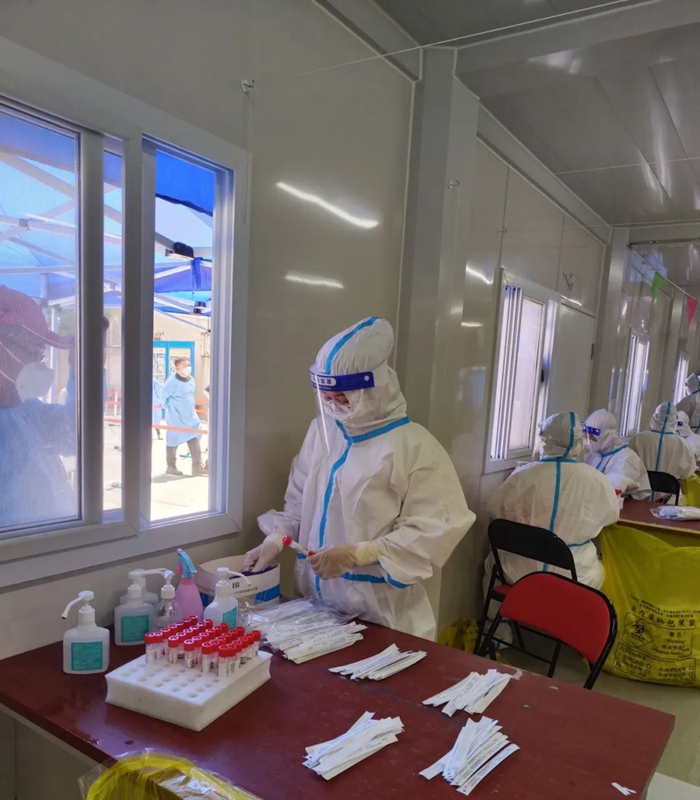 随着天气愈发的燥热,换上大白的我们,衣服瞬间就已经湿透了,但大家没有一句怨言,继续战斗在检测一线。有的时候做核酸的居民太多,我们的医护人员和志愿者不能按时吃饭,好在小区的群众都很配合,一句句“谢谢,辛苦了”沁入心脾,真的很感动。