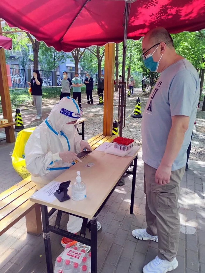近期疫情再袭北京,全市抗疫冲锋号吹响。当看到所在社区党支部在招募核酸检测志愿者时,我毫不犹豫地积极报名参加。我想,我作为一名时代青年、一名党员,要在国家需要时,在抗疫关键时刻冲锋在前,贡献青春力量。