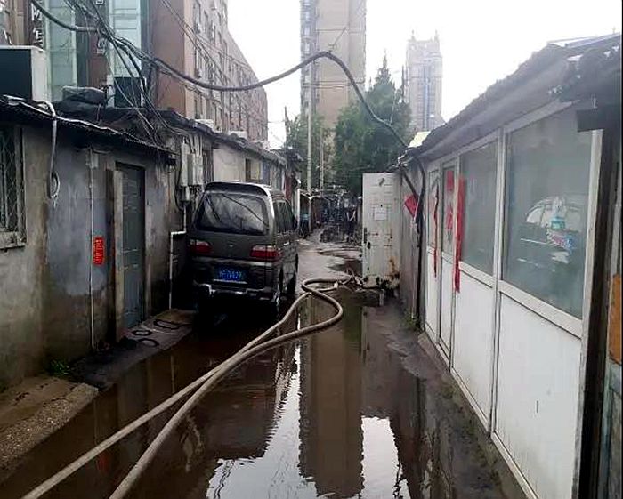 近日京城强对流天气频繁出现,这给北搪公司所辖的化建家属宿舍区大郊亭3号院居民生活带来不利影响。因该院属于老旧宿舍区,地势低洼,很容易形成积水,尤其是暴雨天气,若不及时处理积水,给宿舍区的居民生活、出行带来很大困扰,严重时还会带来安全隐患。